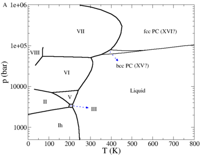 - ↑ J. L. Aragones, M. M. Conde, E. G. Noya and C. Vega "The phase diagram of water at high pressures as obtained by computer simulations of the TIP4P/2005 model: the appearance of a plastic crystal phase", Physical Chemistry Chemical Physics 11 pp. 543- (2009)